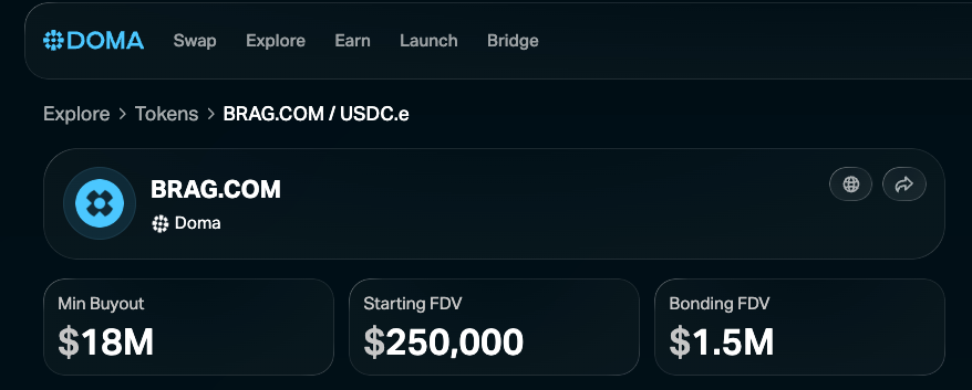 Today marks another major milestone for DomainFi: BRAG.COM, one of the most instinctive premium domains on the internet, is now live and tradable on the Doma App.