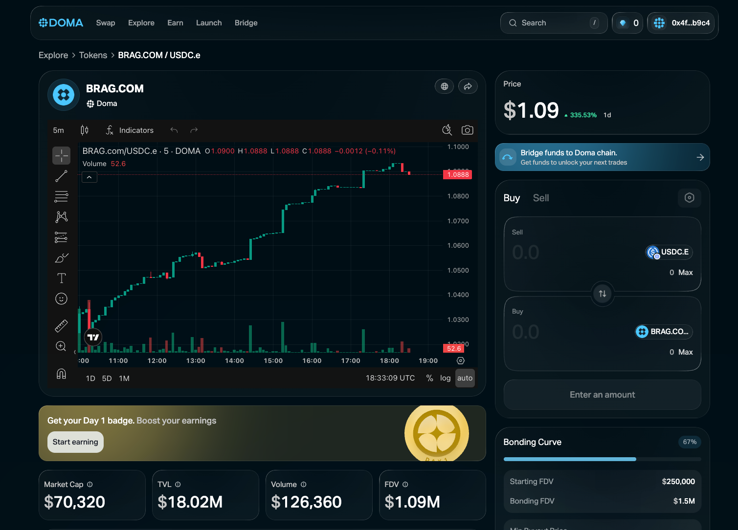 BRAG.COM has officially launched on Doma, and the market is already waking up to what this asset represents: a premium 4-letter .com, a status primitive, and one of the cleanest onchain identity plays in DomainFi.
