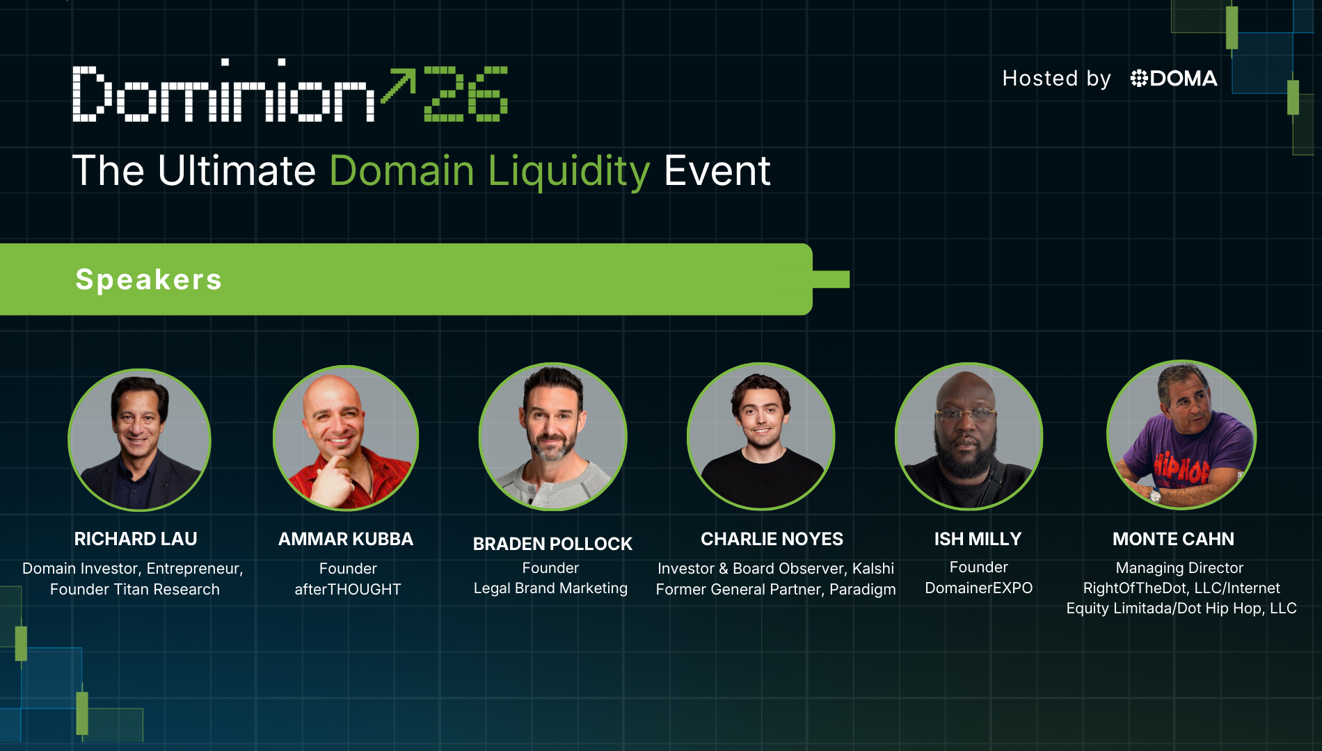 Dominion brings together the sharpest minds across domain investing, infrastructure, and digital asset markets, all focused on one goal: