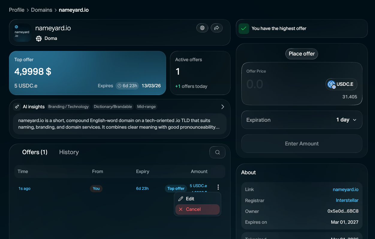 These updates continue to make Doma faster, smoother, and easier to use as activity across DomainFi keeps growing.