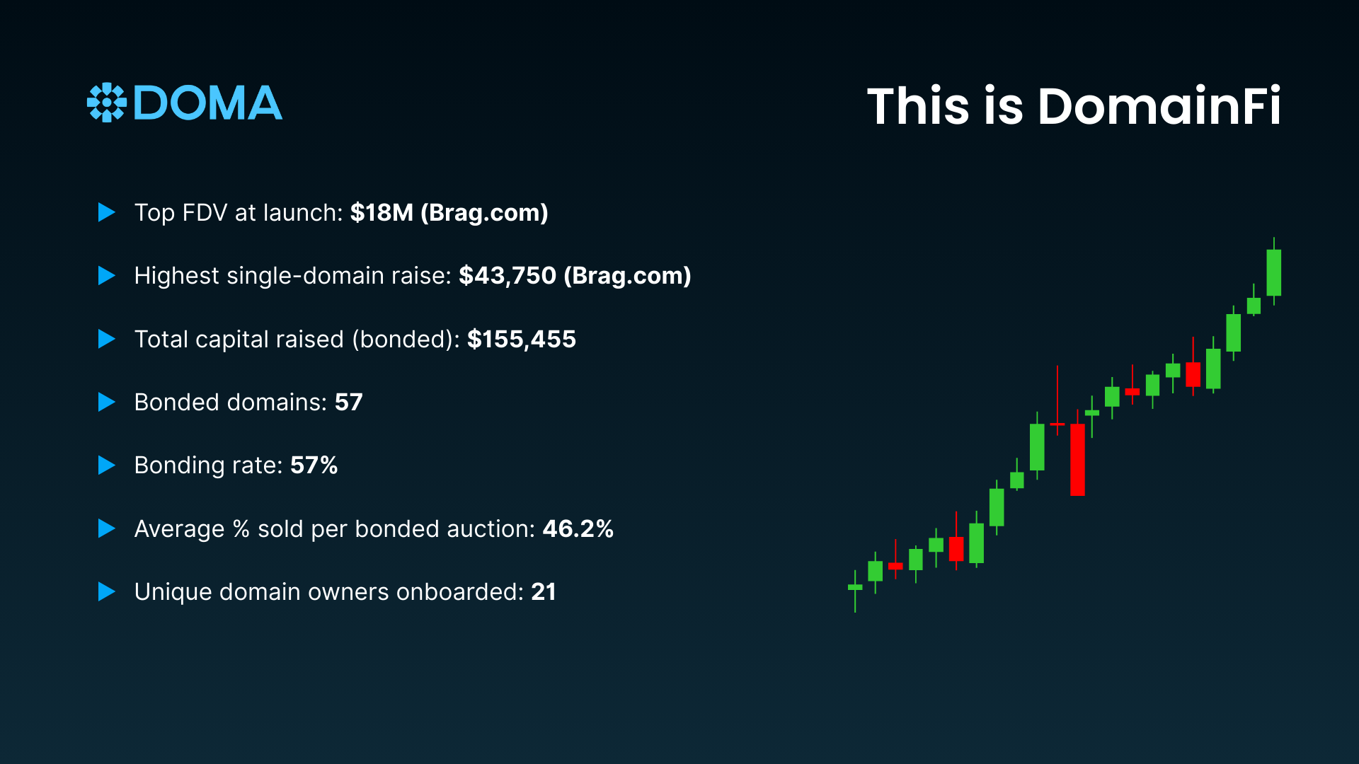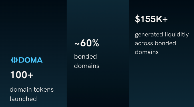 Now we’re past 100 launches, 57 bonded domains, $155K+ in capital raised and the DomainFi flywheel is clearly spinning.