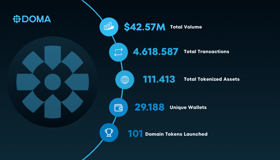 This week we crossed two more major milestones: $42M+ in total volume and 4.6M+ total transactions, another clear signal that activity on Doma keeps compounding.