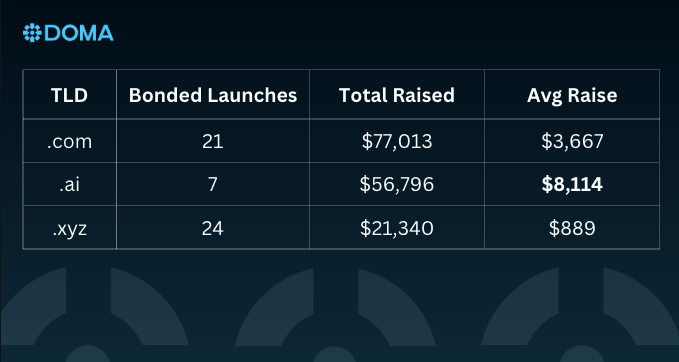 .ai domains raised more than 2x the average per launch vs .com.