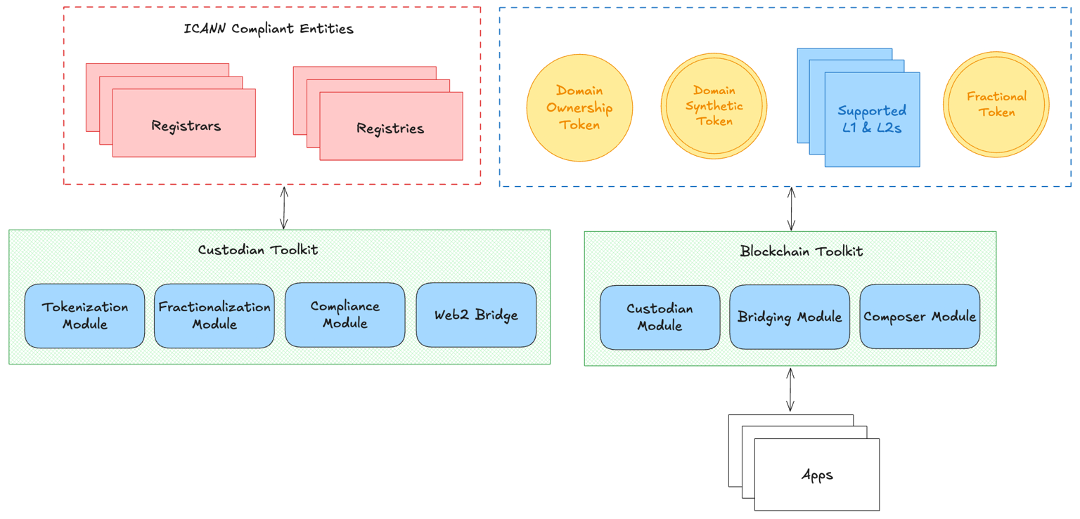 - The tokenized domain remains recognized within the universe of DNS-based registrar systems to maintain custody while simultaneously gaining the ability to interact with Web3 ecosystems. These domains can come on-chain from a variety of sources including Doma-compatible registrars like NicNames.