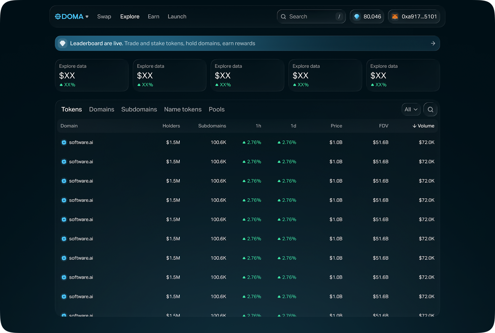 - Staking domain tokens: Contributes to your on-chain participation activity and earns Season 0 points.