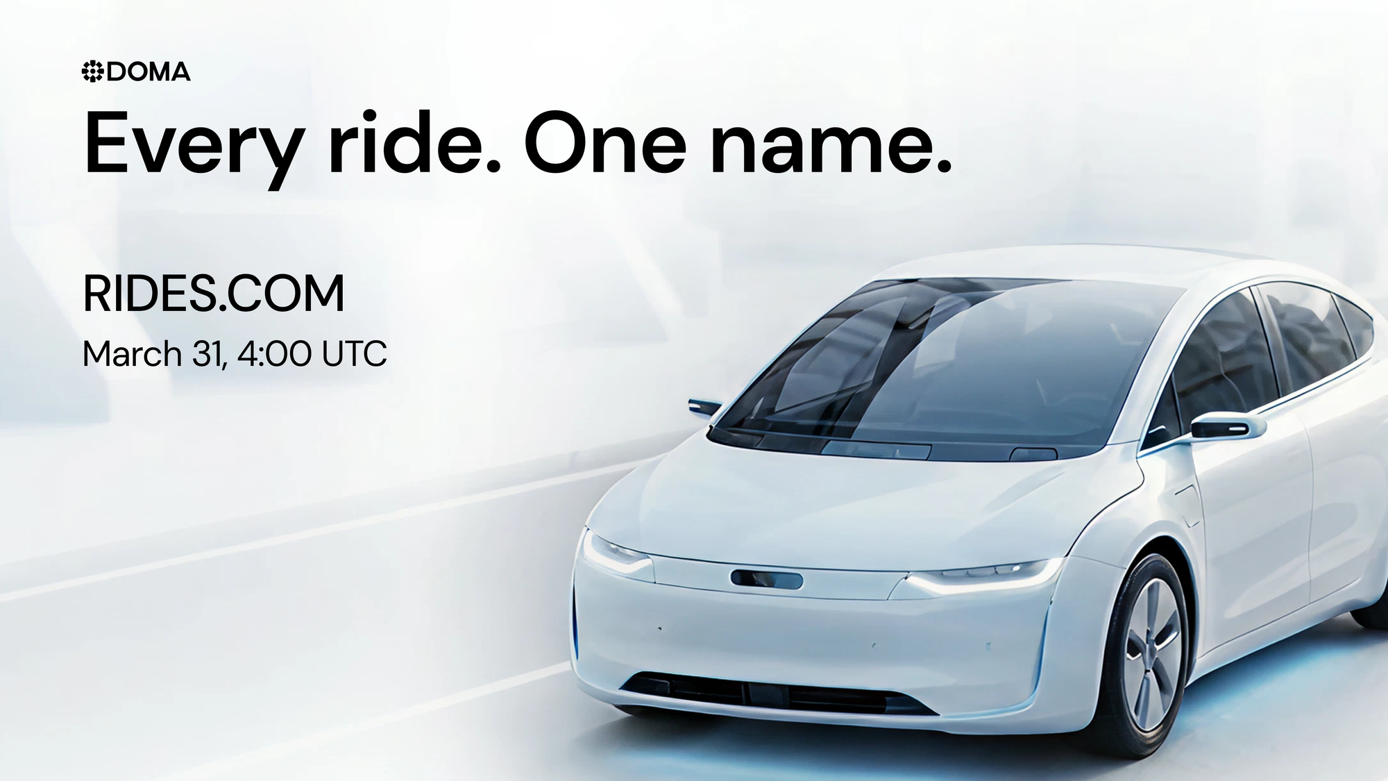 On March 31, 2026 at 4:00 AM UTC, Rides.com goes live on Doma as $RIDES.COM, making one of transportation’s strongest category domains liquid and tradeable onchain for the first time. This is not the launch of a startup. It is the launch of a category-defining asset.