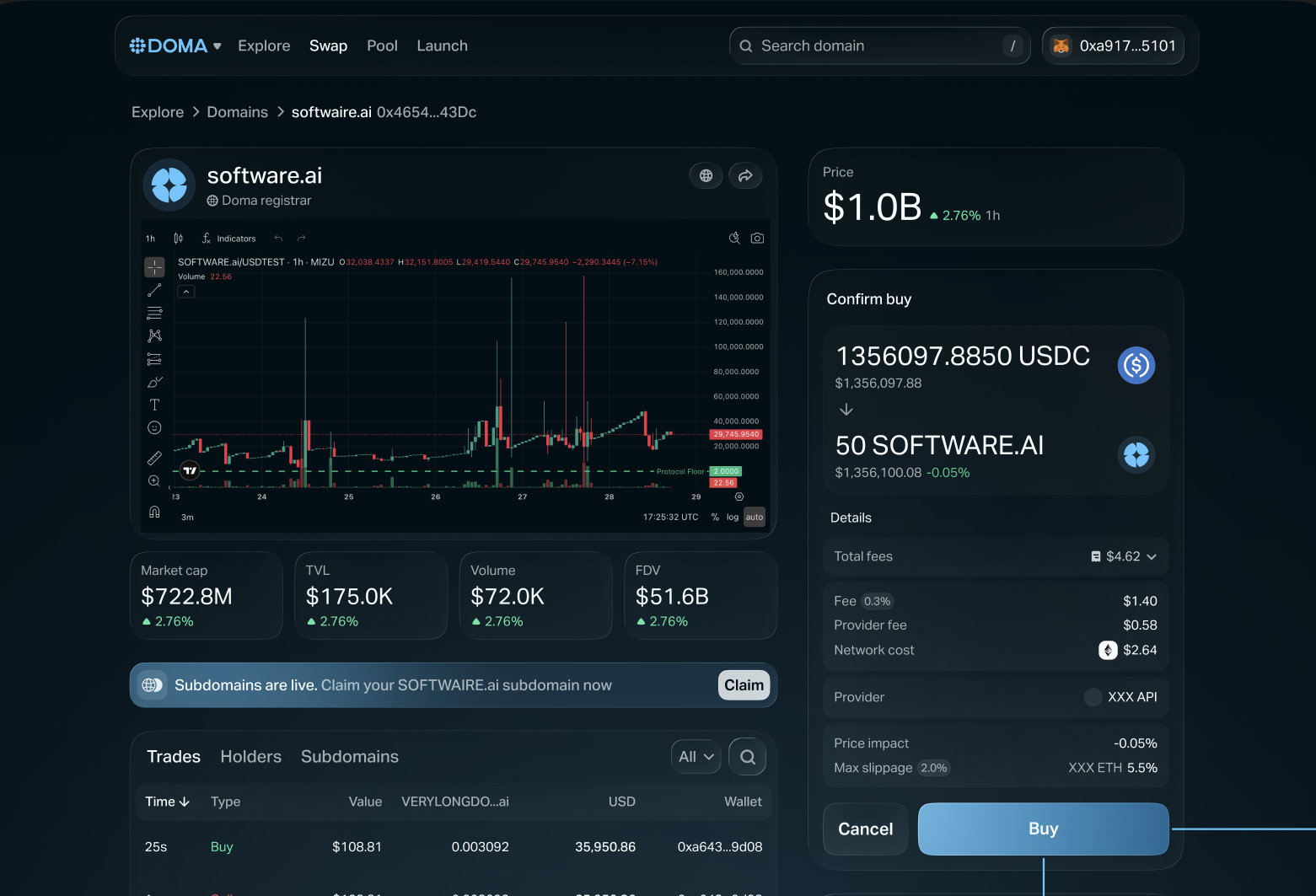When Software.ai goes live on Doma, users can buy and trade $SOFTWARE.AI tokens.